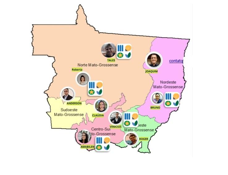 Na Baixada Cuiabana, atuam como agentes de inovação Vinicius Morais Paula, Claudia Marisa Rosa e Rosane Vieiro Veiga. No polo Centro-Sul, com sede em Cáceres, o agente é Amabilen de Oliveira Furlan. O Polo Sudoeste conta com Anderson Gheller Froehlich; o Polo Nordeste, com Bruno Elias Menezes; o Polo Araguaia, com Joaquim Manoel da Silva; o Polo Médio Norte, com Roberta Leal Raye Cargnin; o Polo Sul, com Roger Resmini; e o Polo Norte, com Tales Nereu Bogoni.