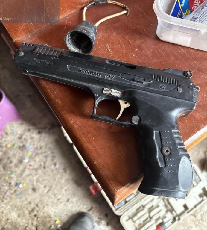 Na sequência os policiais civis e militares foram até o endereço para averiguação e encontraram diversos objetos quebrados no interior do imóvel. No local foi localizada a faca usada para ameaçar a vítima e um simulacro de arma de fogo.