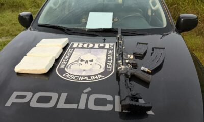 Policiais militares do Batalhão de Operações Especiais (Bope) apreenderam uma espingarda de calibre 12 e três quilos de substância análoga à cocaína, nesta quarta-feira (18.3), em...