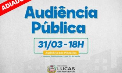 A Prefeitura de Lucas do Rio Verde informa que devido à incompatibilidade de agenda, a segunda Audiência Pública com os moradores do Núcleo Urbano 30 de...