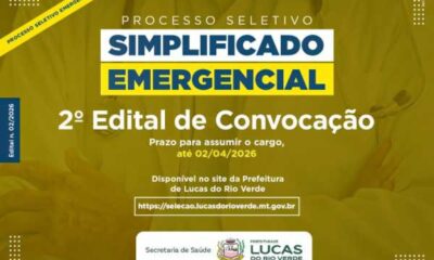 Já está disponível no site da Prefeitura de Lucas do Rio Verde, o segundo edital de convocação de aprovados, referente ao Processo Seletivo Emergencial Simplificado (Edital...
