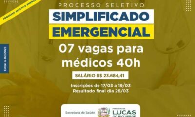 A Prefeitura de Lucas do Rio Verde abriu nesta terça-feira (17), as inscrições para o Processo Seletivo Simplificado Emergencial. O Edital n. 02/2026 está disponível no...