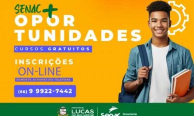A Prefeitura de Lucas do Rio Verde, em parceria com o Senac, está com inscrições abertas para dois novos cursos gratuitos por meio do programa Senac...